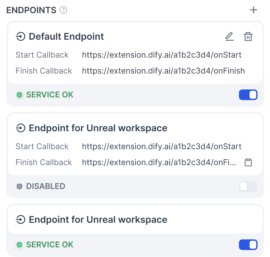 - Endpoints can be used to handle Webhook callbacks or provide interfaces for other systems to connect.