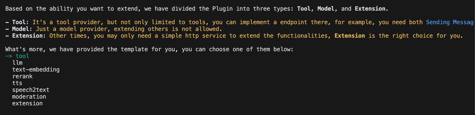 Run the scaffolding command line tool to create a new Dify plugin project.dify and copied it to the /usr/local/bin path, you can run the following command to create a new plugin project: