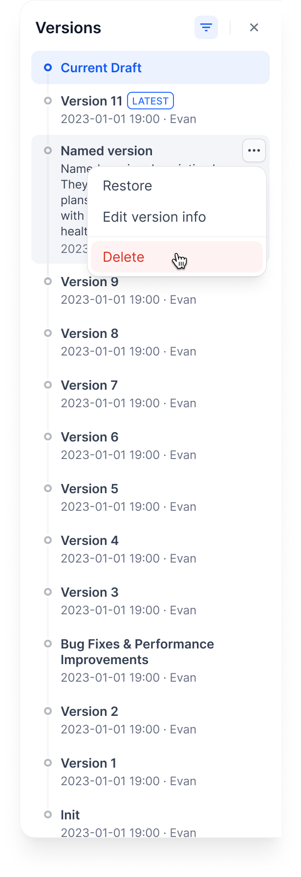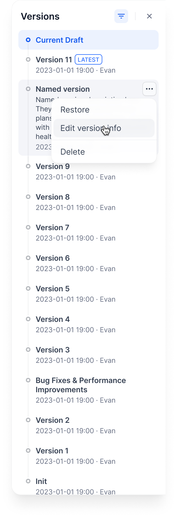 - Only named versions (skip auto-generated names)