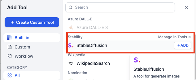 Next, you need to fill in the key in Dify - Tools - Stability by following these steps:
